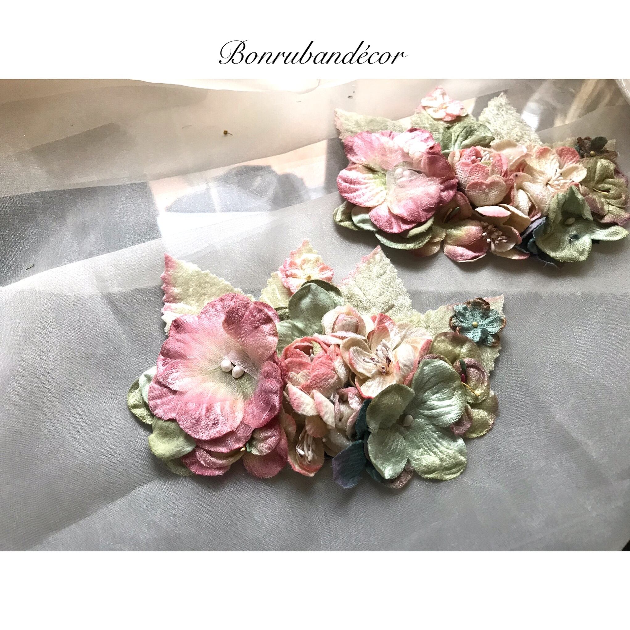 ロンドン買付のベルベットフラワーパーツです。 可愛いお花のパーツがバランスよく配置された 豪華で可憐なお品です。 size 15×8cm