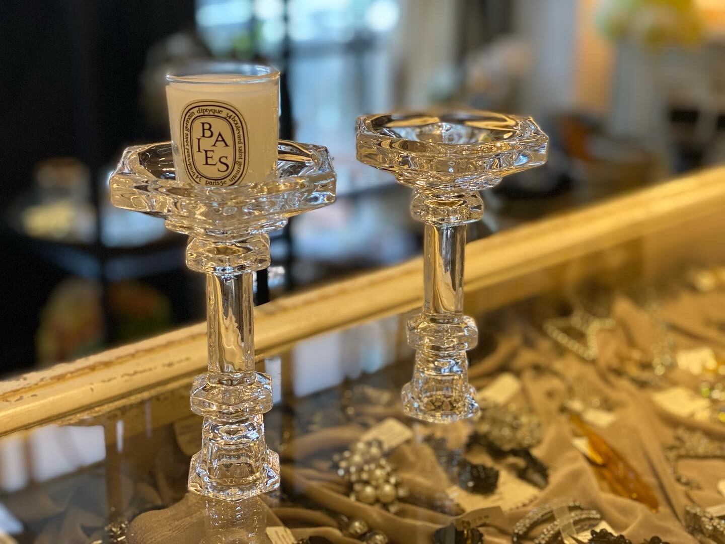 クリアーガラスのクラシカルなキャンドルホルダーです。どっしりとした透明度の高いお品です。